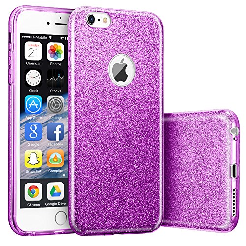 Shiny Bling Sparkle struttura a 3 strati con protezione completa a 360 gradi, TPU Soft Shell (esterno) + Flash of Silver Film (Medio) + trasparente PC Frosted Shell (interno), non solo di proteggere le scintille, ma anche proteggere la vostra mela 6 da graffi, scioccante e doping.