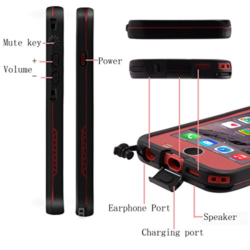 IPhone 6 Custodia impermeabile, Eonfine Custodia impermeabile iPhone 6, 4.7ft subacquea Shock neve contro lo sporco Copri urti Resistente all'acqua per iPhone 6,Rosso