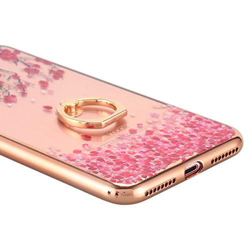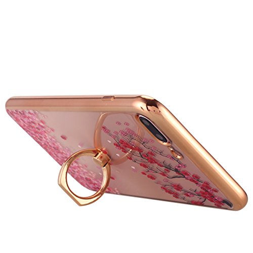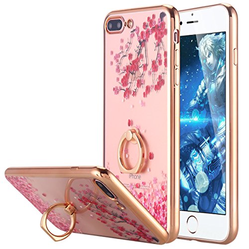 IPhone 7 Plus Custodia, iPhone 7 Plus Case, lontect Floral Flower Clear Design Pattern Stampa Soft TPU Gel Sottile Custodia Protettiva con manico Anelli Holder stand Antigraffio per Apple Iphone 7 Plus