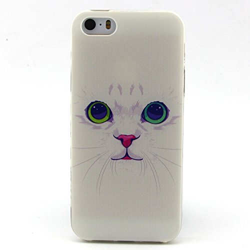 IPhone SE TPU Custodia Morbido,iPhone 5S morbido protettiva TPU Caso Copertina Trasparente Ultra Sottile Silicone Gel,Herzzer Moda Colorata [Gatto bianco Modello] Flessibile Skin Protettore Copertura Shell del Paraurti Cover posteriore per iPhone SE/iPhone 5/5S + 1 x bianca telefono cellulare Cavalletto + 1 x Pennino Argento