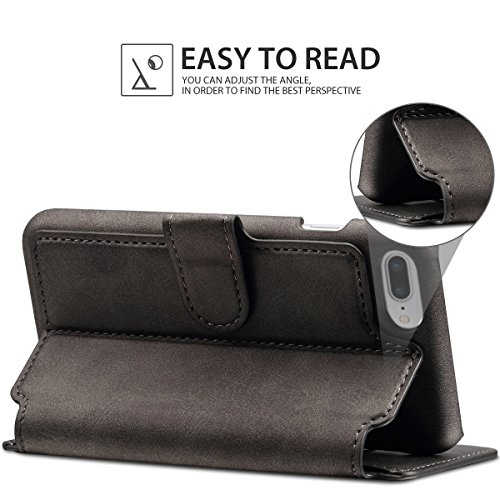 IPhone 7 Plus Custodia, Pasonomi iPhone 7 Plus Cover custodia Retro Wallet a Libro in Pelle Con Supporto di Stand Cover Per iPhone 7 Plus, Nero