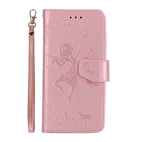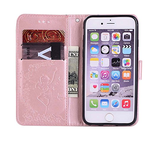 IPhone 6 6S Custodia [Protezione Libera dello Schermo], CSM® PU Impresso Farfalla Dancing Girl con [Staccabile] Magnetico a Flip in Similpelle per Apple iPhone 6 6S [Oro Rosa]