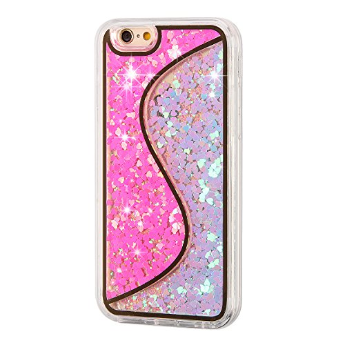 Iphone 5/5S Custodia Rigida, Copertura dura per la iphone 5S, Case Cover per iphone 5 in 3D Trasparente, Ukayfe Flowing Sparkles Argento Shinny Scintillio Bling Glitter Stars Polvere con amore Pittura Anti Scratch Bumper di Protezione Trasparente Hard Shell case Cover per Apple iphone 5/5S con Free Stilo Penna - S-tipo di colore(Rosso e blu)