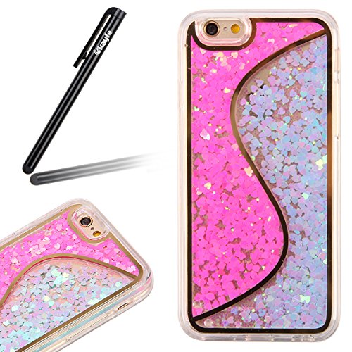 Iphone 4/4S Custodia Rigida, Copertura dura per la iphone 4S, Case Cover per iphone 4 in 3D Trasparente, Ukayfe Flowing Sparkles Argento Shinny Scintillio Bling Glitter Stars Polvere con amore Pittura Anti Scratch Bumper di Protezione Trasparente Hard Shell case Cover per Apple iphone 4/4S con Free Stilo Penna - S-tipo di colore(Rosso e blu)