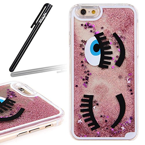 Iphone 6 custodia rigida, Copertura dura per la iphone 6 4.7", Hard Case Cover per iphone 6 in 3D, Ukayfe Creative Design scorre fluttuante liquido lusso di Bling di scintillio Sparkle Bella Ragazza con Grandi Occhi assorbimento degli urti della copertura del respingente e anti-graffio per Apple iphone 6 4.7" con Free Stilo Penna - occhio-rosa