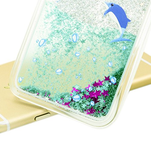 IPhone 5S Custodia Rigida,iPhone 5 Cover,Hamyi,Trasparente 3D Disegno Flowing liquido scintillio Stelle Quicksand Protettiva Caso in Dura Plastica per Apple iPhone 5/5S (Dauphin Bleu)