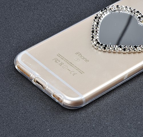 IPhone 5 Custodia in Gel TPU Silicone Cover Morbida Trasparente Protettiva TPU Case con lo Cuore Specchio Cosmetico e Lanyard Colorful Bling Cristallo Diamante Strass Orecchie di Topolino Case Resistente ai Graffi Anti Scivolo Posteriore Della Copertura Protezione Anti-urto per iphone 5 5S SE - Nero