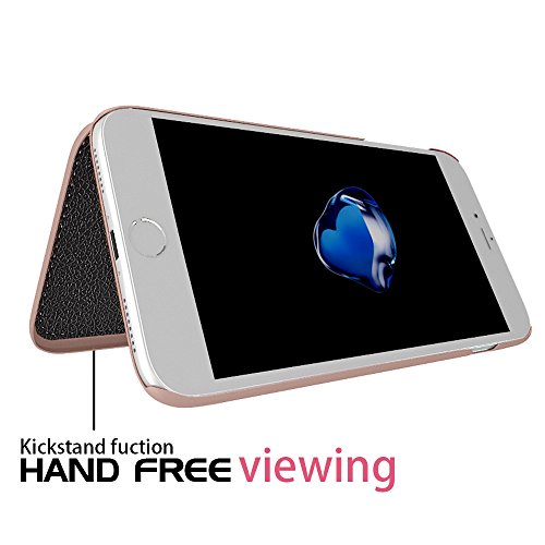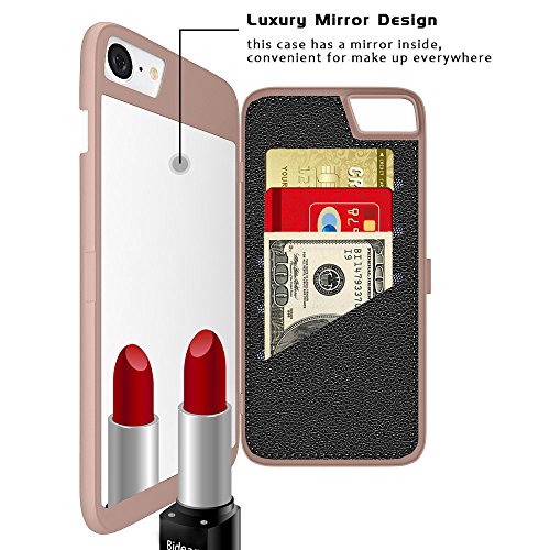 IPhone 7 Plus Custodia con Specchio e Portafoglio per ragazza,Bidear Protettivo Cover Dura Multifunzionale con Slot per Schede e Supporto per iPhone 7 Plus/6 plus/6s plus-5.5 Pollice(Oro rosa)