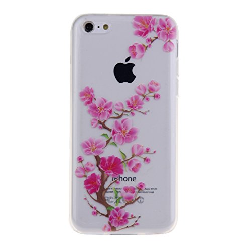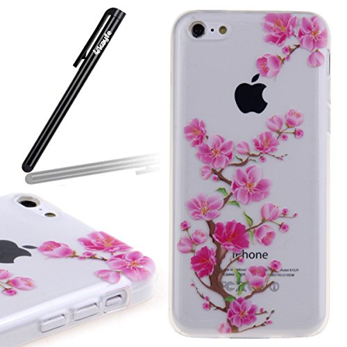 Iphone SE Custodia,Ukayfe Custodia per iphone 5S, cassa sottile sveglio per il iphone 5S, TPU Crystal Clear antigraffio con Rosa Fiore Floreale Plum Blossom Cover posteriore per iPhone di Apple 5 5S + Pellicola Protettiva Schermo + stilo