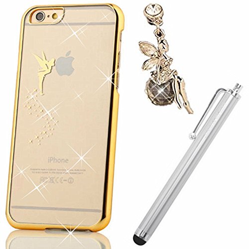 IPhone 6 Plus 5.5 Caso Custodia, Vandot 3In1 Set 3D Lusso Accessori Duro Hard Case Cover Shell Couverture Skin Ultra Thin Sottile Super Slim Premium Quality Luccichio Glitter Piccola Fata Angelo Twinkle Crystal Strass Diamante Pelle +1x Metallo Tocco Penna Stylus Stilo +1x Anti Dust Plug - Chiaro Ciondolo Per Cellulare Donna Lady Signora Stile (Giallo)