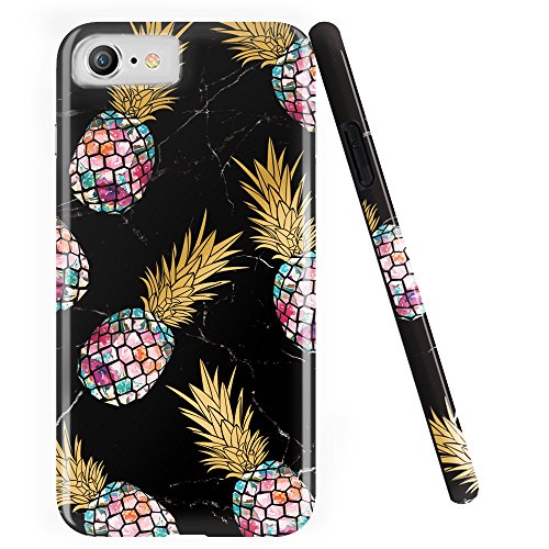 IPhone 5 case, iPhone 5S case, Doujiaz marmo design trasparente bumper custodia in TPU morbido in gomma silicone cover per iPhone 5 5S se Purple Pineapple & Black