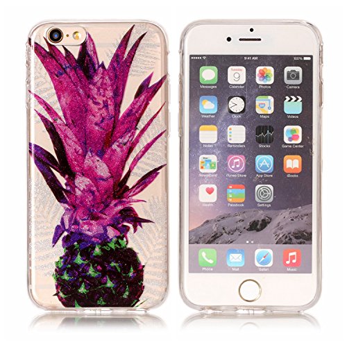 Iphone 6S Glitter Custodia, iphone 6 Silicone Cover, Trasparente Caso for iphone 6S 4.7", Ekakashop Moda Fantasia Creative 3d Gel Soft TPU Silicone Gomma Cover, Colorato Painting High penetration IMD Tech Glitter Sparkly Transparent Clear Morbido Cover Antiurto Protettivo Cover Case Custodia per iphone 6 6S 4.7 pollici con 1x Kickstand (Colore casuale) -- Purple Leaf Ananas