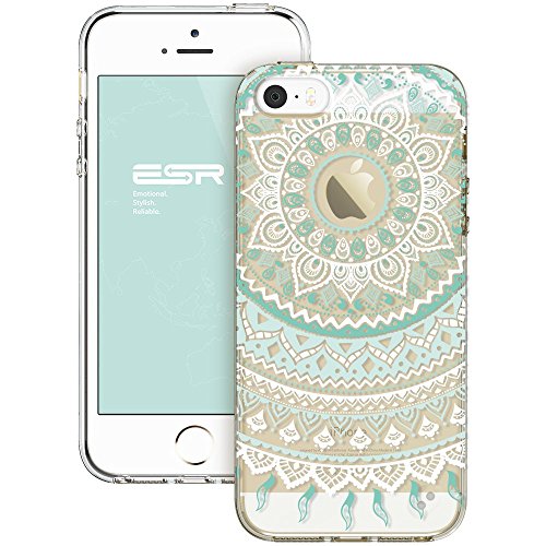 ESR iPhone SE Case, iPhone 5s Case,[ with Free Lanyard iPhone SE 5S 5 Shock-Absorption Bumper Case with Anti-Scratch Pattern Back (Mint Mandala)