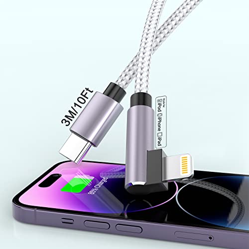 ⍟ Comodo cavo ad angolo retto per iphone - USB-C a cavo ad angolo retto Lightning rende più comodo tenere il vostro iphone mentre l'iphone è in carica. Il cavo da gioco per iphone a 90 gradi impedisce al cavo di sporgersi e mettersi in mezzo alle tue mani mentre scrivi messaggi, lavori o giochi riducendo anche la flessione. La lunghezza extra lunga del cavo Apple 10ft è più conveniente di altri cavi corti, quando ti sdrai giocare, guardando film e persino sul sedile posteriore della tua auto.