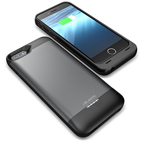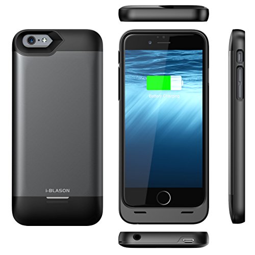 IPhone 6/6S Plus nuova custodia, i-Blason Apple iPhone 6 Plus 14 cm custodia con batteria esterna/caricabatterie custodia [ultra slim] nero/grigio (Lightning Connector output, microUSB input)