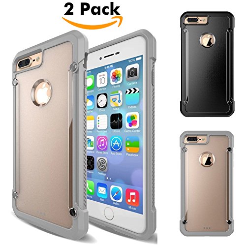 IPhone 7 Plus/ iPhone 8 Plus Custodia Cover, Unives Anti-graffio Protettiva Case Plastica Paraurti TPU Gel Bumper Copertina per iPhone 7/8 Plus 5.5"(2 Pezzi,1 Nero+1 Trasparente Grigio)
