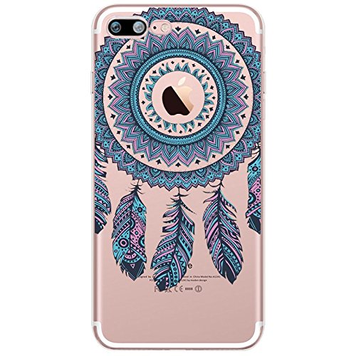 IPhone se/5/5S custodia, Ucmda ultra slim morbido TPU silicone trasparente di gomma paraurti posteriore per iPhone 5/5S/se - grigio Feather, Blue Dream Catcher, iPhone 7 Plus