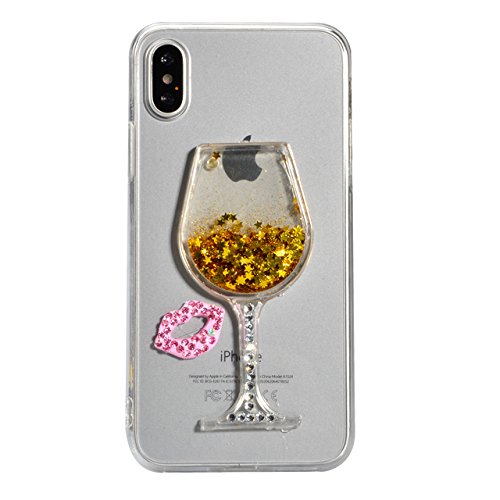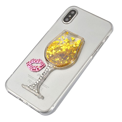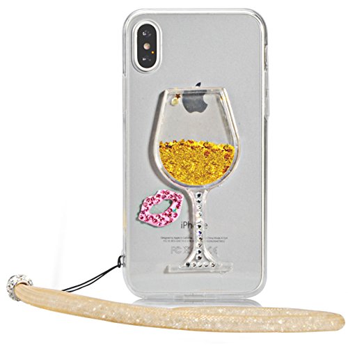 Per iPhone X / iPhone 10 5.8" Trasparente Silicone Custodia Case Cover, Vandot Creativo Disegno 3D Flowing Liquido Che Scorre Shinny Scintillio Stars Bling Glitter Diamante Labbra Antigraffio Protettivo Bumper Copertura Dura Skin Shell con Lanyard Per iPhone X / iPhone 10 5.8" - Ventro Sabbia Oro