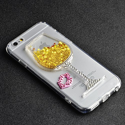 Per iPhone 8 / iPhone 7 4.7 Trasparente Silicone Custodia Case Cover, Vandot Creativo Disegno 3D Flowing Liquido Che Scorre Shinny Scintillio Stars Bling Glitter Diamante Labbra Antigraffio Protettivo Bumper Copertura Dura Skin Shell con Lanyard Per iPhone 8 / iPhone 7 4.7 - Ventro Sabbia Oro