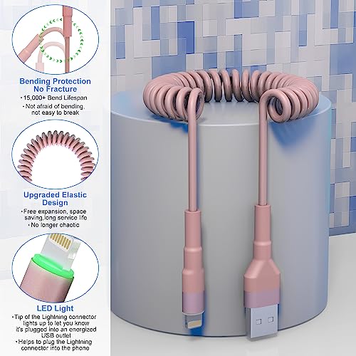 Cavo iPhone Veloce Ricarica a Spirale per Apple Carplay,2 pezzi cavo iPhone per Auto Carplay,[certificato Apple MFi]Cavo Lightning Corto con sincronizzazione dati,Cavo Apple Carplay per iPhone/Pad/Pod