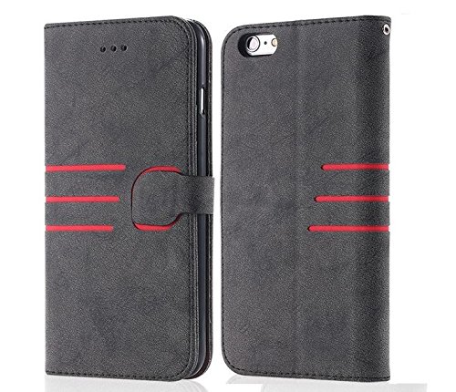 IPhone 6 Case, iPhone 6S Case Wallet completamente telefono mano cucito in lusso Magnetic Flip Case (Nero e Rosso)