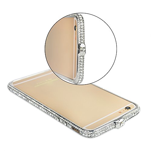 TFZ iPhone6 Case, iPhone6S Case, cristalli di moda combinata disegno diamante Sparkle Jeweled struttura del metallo, 100% artigianale, di lusso di cristallo del diamante di Bling del Rhinestone della pagina del metallo della copertura della cassa del respingente per Iphone 6, appositamente progettato per Fashion Lover (rotonda strass / nastro 4.7inch)