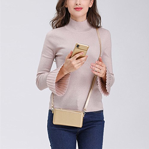 IPhoneX / IPhone10 Custodia Pu Portafoglio Protettiva in pelle per P Bookstyle Flip Cover Stand Case,Vandot Portafoglio Donna,casual Crossbody tracolla, borsa messenger,Porta Carte di Credito, Cover Custodia per IphoneX /IPhone10,Portafoglio Donna, Abbigliamento in Pelle di Moda Portafogli Foglia d'oro Hollow Grande Capacità Cerniera Zipper, Wristlet Borsetta Custodia IphoneX / IPhone10, Ragazze,Capodanno, regali ragazza, San Valentino,Oro