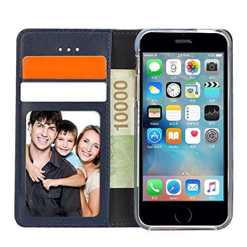 IPHOX Cover iPhone SE 2016,Custodia iPhone 5 / 5S, [RFID Blocco Portafoglio] Flip Custodia Portafoglio in PU,[Funzione Staffa]con Slot per Schede e Chiusura Magnetica per iPhone SE2016/5S/5-Blu /E