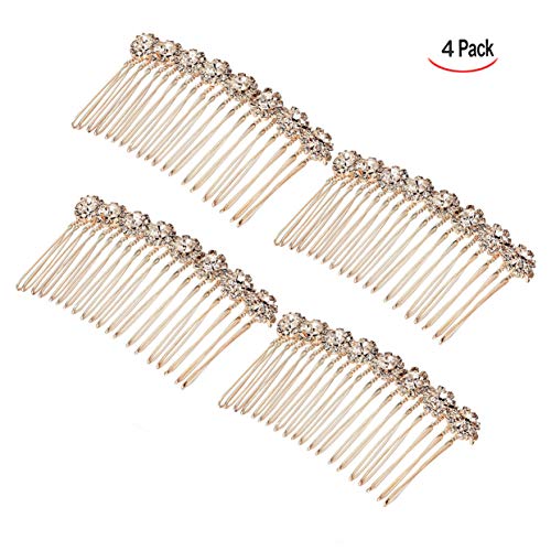 IPobie Fermagli a Pettine di Strass,4 Pezzi Fiore Laterali Pettine per Capelli Sposa,Forcine per Capelli,Oro Rosa