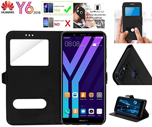 IPOMCASE 2 Windows - Stall Chiamata Funzione della Copertura del Telefono per Huawei Y6 2018 (attenzione: Non Adatto Y6 Y6 2017)