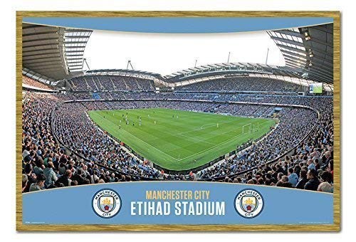 IPosters Manchester City Etihad Stadium Poster Magnetico bacheca Cornice in Legno di Quercia - 96.5 x 66 CMS (Circa 96,5 x 66 cm)