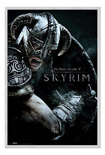 IPosters Skyrim Attack Poster Magnetico bacheca Cornice Argento - 96.5 x 66 CMS (Circa 96,5 x 66 cm)