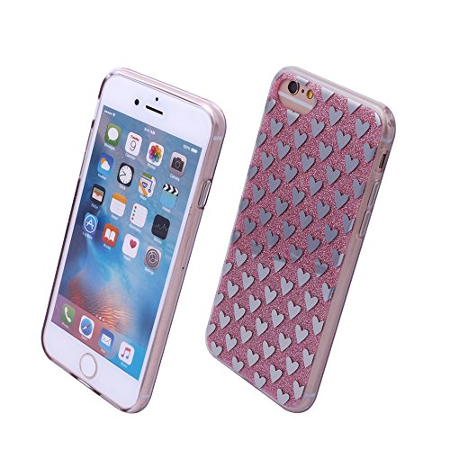 IProtect Cover con Glitter e Brillantini per Apple iPhone 7 e iPhone 8 - Custodia Rigida in TPU Color Rosa con Strass e Cuoricini argentati