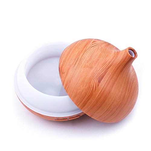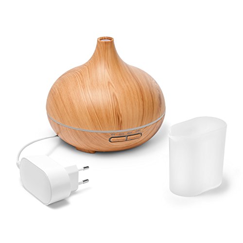IProtect Diffusore d'Aromi ad ultrasuoni e Umidificatore Rotondo da 300ml con luci Colorate in Effetto Legno Beige