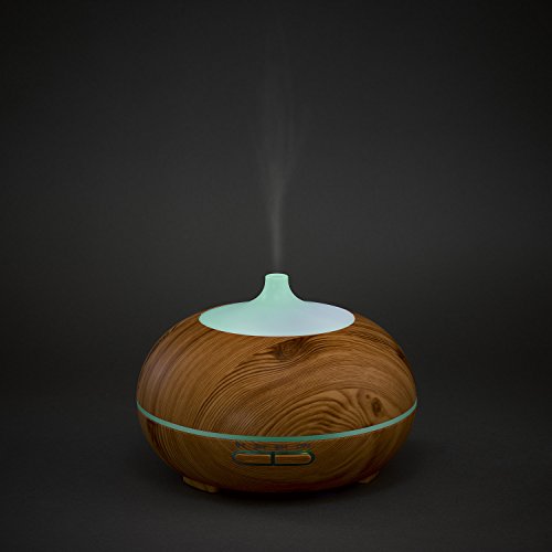 IProtect Diffusore d'Aromi ad ultrasuoni e Umidificatore Rotondo da 300ml con luci Colorate in Effetto Legno Chiaro