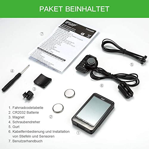 IPSXP Contachilometri per bici, Bike Computer Wired con ampio display retroilluminato con 18 funzioni, Contachilometri bici impermeabile facile da installare con sensore di movimento