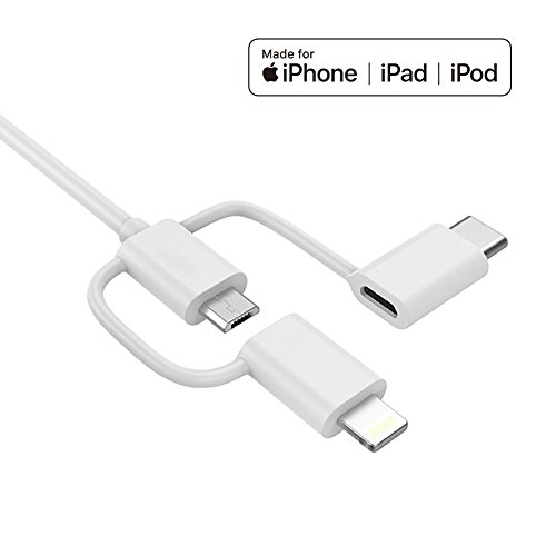 IQIYI [Apple MFi Certified Cavo di Ricarica USB 3 in 1 (Tipo C/Lightning/Micro) Carica/sincronizzazione per iPhone/Android, 1m, Bianco