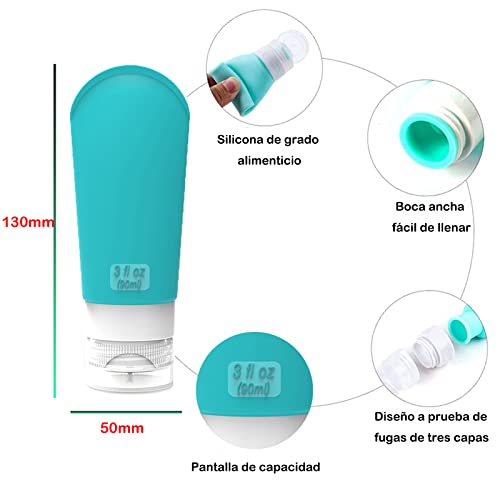 IraXpro Bottiglie da Viaggio in Silicone,90 ml,Senza BPA, 4 Pezzi Kit Contenitori da Viaggio Flaconi,contenitore ricaricabilecon,per shampoo,lozione, Balsamo,Crema