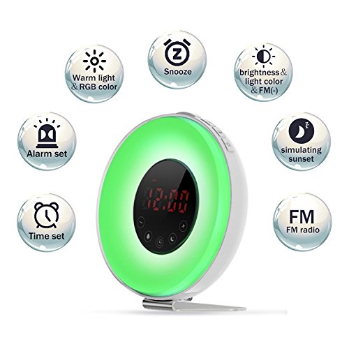 Irealist - Sveglia touch-control, risveglio con simulazione luminosa dell'alba e luce notturna RGB opzionale, radio FM e funzione 'sonnellino' Silver