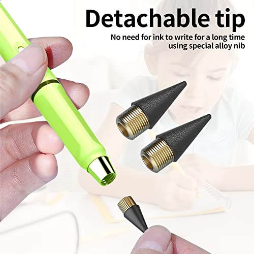【DUREVOLE E DUREVOLE】 Le matite senza inchiostro non hanno bisogno di aggiungere inchiostro, non è necessario affilare o cambiare la mina, puoi usarla sempre e ovunque. Il pennino della penna sfrega contro la carta, scomponendo le molecole di metallo per formare la scrittura. Può essere riutilizzato molte volte.