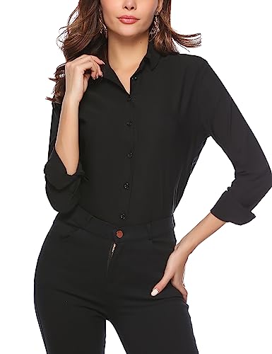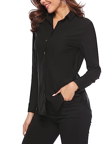 Irevial Camicia da Donna Elegante Chiffon Bluse Basic Shirt Camicetta a Manica Lunga Ufficio Nero XL