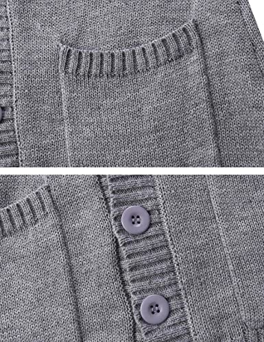 Irevial Cardigan Lavorato Donna a Maniche Lunghe Giacca Lunga Elegante Maglia Cappotto Cardigan Tinta Unita Scollo a V Morbido Casual, Grigio, L