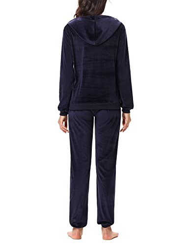 Irevial Due Pezzi Tuta da Casa Donna in Velluto Invernale Completo Sportivo Tuta da Ginnastica con Felpa a Zip e Pantaloni Training con Tasca Blu Navy XS