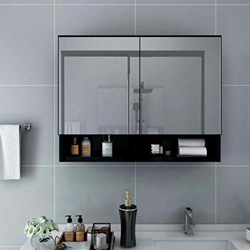 Irfora Armadietto a Specchio, con Luci, Mobiletto Bagno con Specchio, Pensile Bagno con Ripiani e Specchio, Armadietto Parete Salvaspazio Contenitore, in MDF 80x15x60 cm Nero
