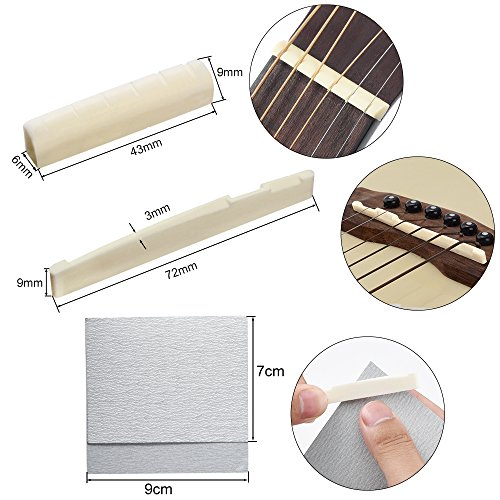 Irich Lime Ad Ago Diamantate, Ponte Osso e Dado con 2 Carta Vetrata per Classica Chitarra Acustica Basso Ukulele Folk Elettrica 10 Pezzi