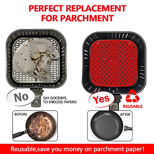 【Misura universale per friggitrici ad aria XL e grandi】 Questo set si adatta alla maggior parte dei cestelli e agli accessori per friggitrici ad aria come una friggitrice ad aria, una padella o una padella. Possono anche essere usati come rivestimento per la cottura a vapore, sottopentola in silicone o tappetino da forno in silicone in una pentola di coccio o pentola a pressione.
