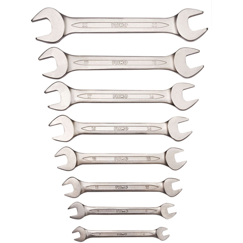 Set di 8 chiavi fisse irimo 6-22mm 10-8 h. Set da 8 pezzi con supporto in plastica. componenti: chiavi fisse da 6x7 a 20x22mm. Finitura: cromo opaco. Materiale: acciaio legato ad alte prestazioni. durezza: 42-50 HRC. Norme: ISO 10102. Caratteristiche Marchio: Irimo Tipologia: Set chiavi fisse Produttore riferimento: 10-8-H Normativa: Isou00a010102 Colore: Finitura cromata opaca Materiale: Lega di acciaio ad alte prestazioni Materiale: Durezza: 42-50u00a0HRc Contenuto: 8 Chiavi Specifiche: Con supporto in plastica Misure: Chiavi fisse da 6 u00d7 7 a 20 u00d7 22 mm < /li>