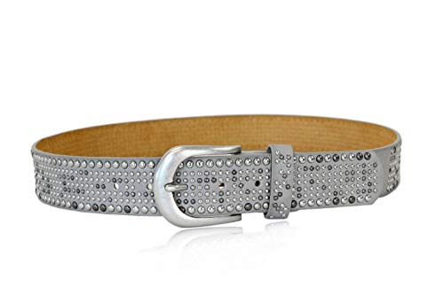 Irisaa - Cintura da donna con borchie larghe in stile vintage grigio. 85 cm
