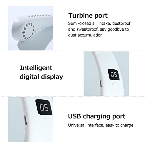 Irishom Ventilatore 5 ingranaggi Display digitale senza foglie portatile Appeso al collo 2600mAh Condizionatore d'aria pigro di grande capacità Ventilatore portatile USB piccolo