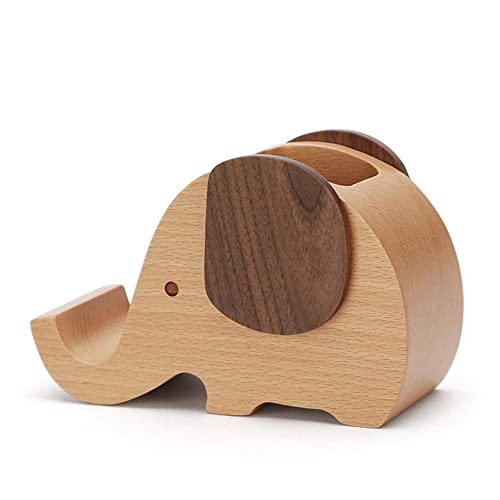 IRIVER BLANK Supporto in legno per cellulare, supporto di ricarica per cellulare, supporto per tablet, supporto creativo per telefono con portapenne e portapenne/vaso (elefante)